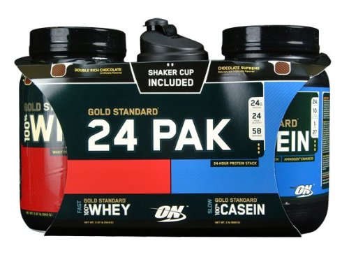 Optimum Nutrition 24 Pak, 24-Hour Protein Stack: 100% Whey, Double Rich Chocolate. 100% Casein, Chocolate Supreme. 1 pack